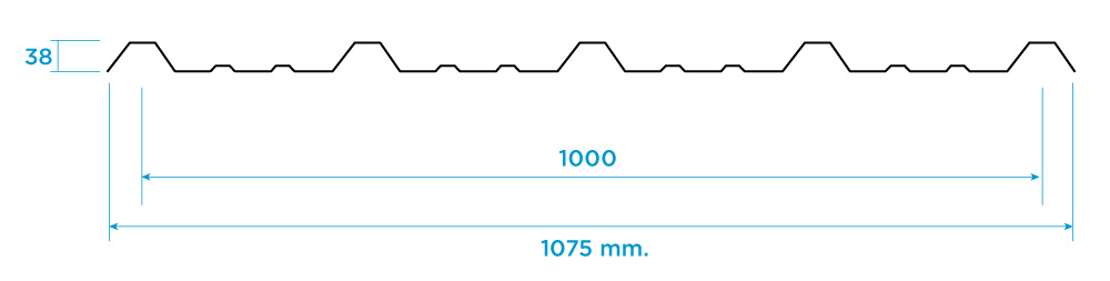 El Panel UPVC IC-T1075 es una cobertura termoacústica multicapa conformada por tres capas de UPVC (cloruro de polivinilo no plastificado) y una capa superior de PMMA (polimetilmetacrilato) que brinda alta resistencia a la corrosión, radiación UV y agentes químicos. Su diseño con 5 grecas de alto perfil estructural garantiza excelente capacidad de carga y drenaje pluvial eficiente.
